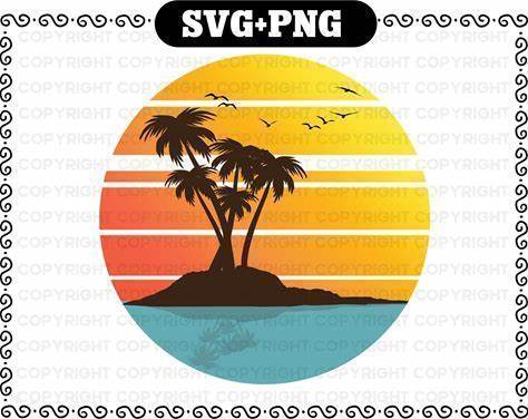 Retro Vintage Circle Palm Sunset Svg For Cricut And Png Digital Downlad