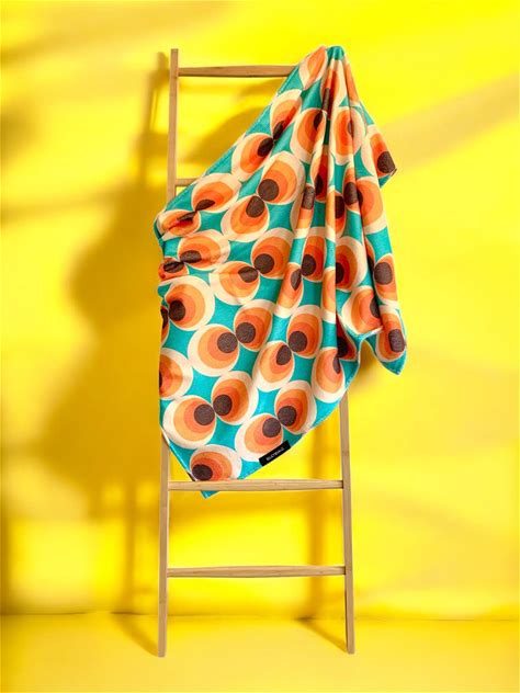 Retro Beach Towel With Big Sized Patterns, Space Age Circle Pattern, 1970S Design