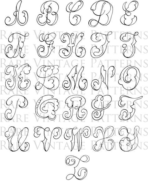 Fancy SCRIPT ALPHABET STENCIL A To Z Initials On One A4 Page 4 X Files Jpg Png Transparent And Reverse Images Hand Embroidery Sewing Pattern
