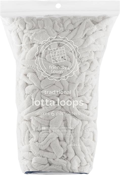 Friendly Loom | Lotta Loops - 7" Traditional-Sized White Potholder Weaving Loops | Craft 6 Cotton Potholders