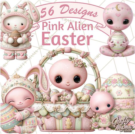 56 Png, Alien Easter Clipart, Cute Pink Alien Easter Eggs, Soft 3D Alien Easter Theme, Whimsical Easter Clip Art, Pastel Easter PNG
