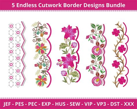 Cutwork Flower Border Designs - Machine Embroidery Pattern And Design - 5 Designs - Instant Download
