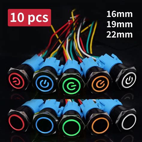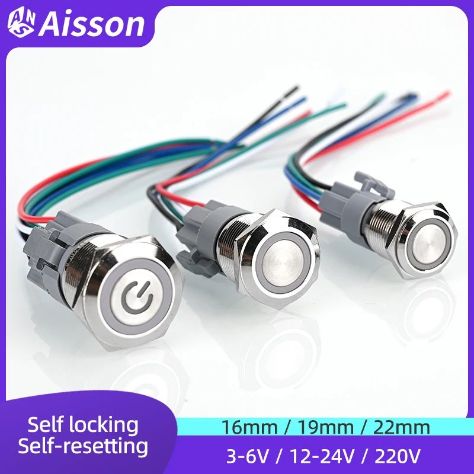 5 Pcs Black Push Button Switch With Wire Waterproof Illuminated Metal Latching Momentary 5V 12V 220V
