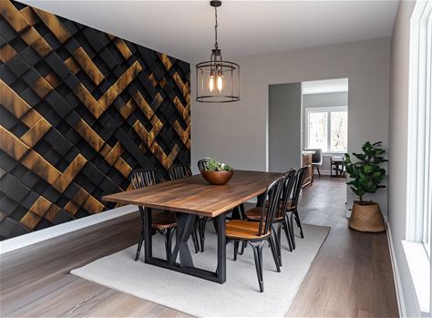 Easestick Geometric Peel And Stick Wallpaper Black Patterned Contact Paper 15.7"X472" Removable Matte Black 3D Wallpaper Textured Waterproof Dark Wall