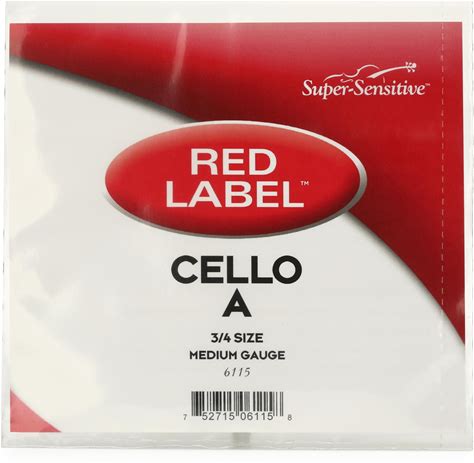 Super Sensitive Red Label Series Cello String Set 3/4 Size, Medium