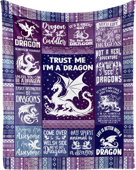 Homieblanket Dragon Blanket For Boys Girls, Cute Dragon Themed Design Printed Purple Throw Blankets For Kids Lap, Chair Sofa, Warm Soft Cozy Blanket,