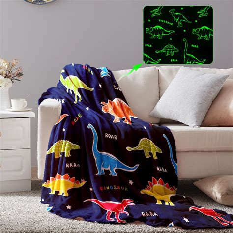 Glow In The Dark Dinosaur Blankets Gifts, Soft Cozy Flannel Kids Throw Blanket Fit 1-13 Years Old Toddler Teen Son Girls Present Birthday Christmas