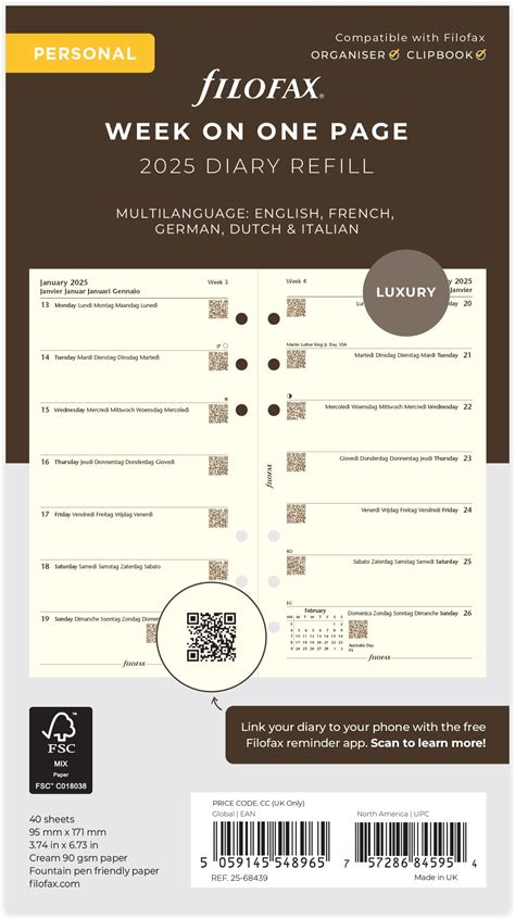 Personal Week Per Page 5 Language Cotton Cream 2025