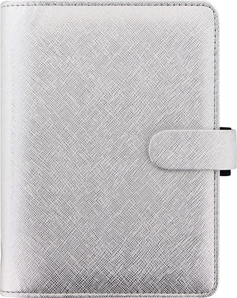 Filofax Saffiano Metallic Organizer, Personal Size, Silver - Cross-Grain, Leather-Look, Bright Metallic Finish, Six Rings, Week-To-View Calendar Diary