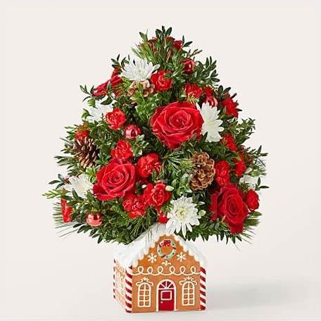 Proflowers | Flower Delivery | Spiced Gingerbread Tree - Deluxe | Rose | Carnation | Christmas Greens | Red | White
