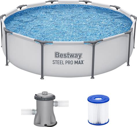 Bestway Steel Pro MAX 10' X 30" Above Ground Pool, Round Metal Frame Outdoor Swimming Pool Set With Filter Pump & Type I Cartridge, Gray