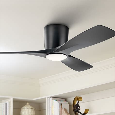 Visual Comfort Fan Plank Smart 52 Hugger Indoor Ceiling Fan With Natural Honey Blades And Handheld Remote Blade Finish: Midnight Black, Fan Body Finish: Natural Honey