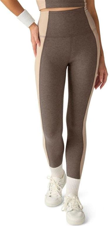 Women's Crossover Waist Colorblock Full Length Leggings With Stretch Fit Fabric, Size: Medium, Brown