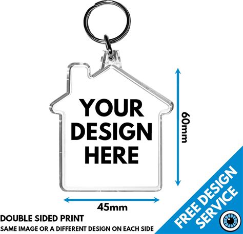 House Custom Printed Keyring Key Ring Personalised Print Keyrings Big 60x45mm