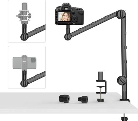 Foldable Overhead Camera Desk Mount Stand With 360° Rotation C-Clamp Holder 30.9 in. Black (1-Piece)