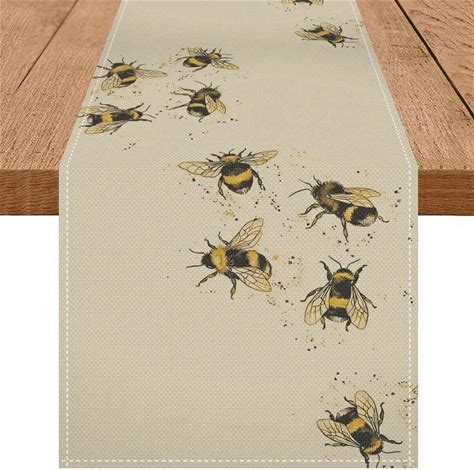 Cozy Bee Table Runner - Abstract Yellow Bumblebee Sandy Beach Design, Easy-Clean Kitchen Dining Home