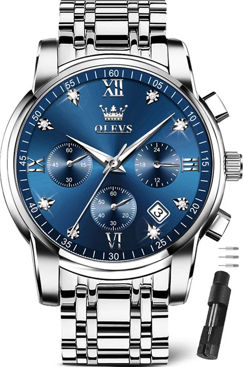 OLEVS Men's Stainless Steel Chronograph Watch, Big Face Gold Silver Black Tone Easy To Read Analog Quartz Watch, Luxury Waterproof Date Diamond Roman