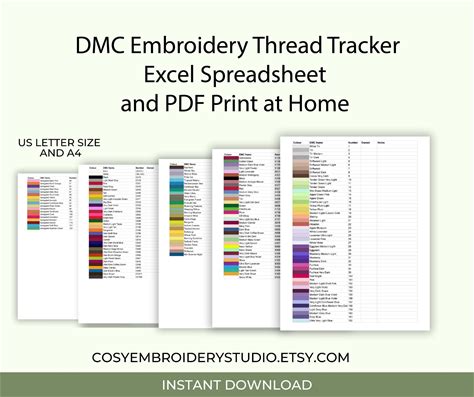 DMC Thread Color Charts: Printable Inventory Tracker (PDF Download)